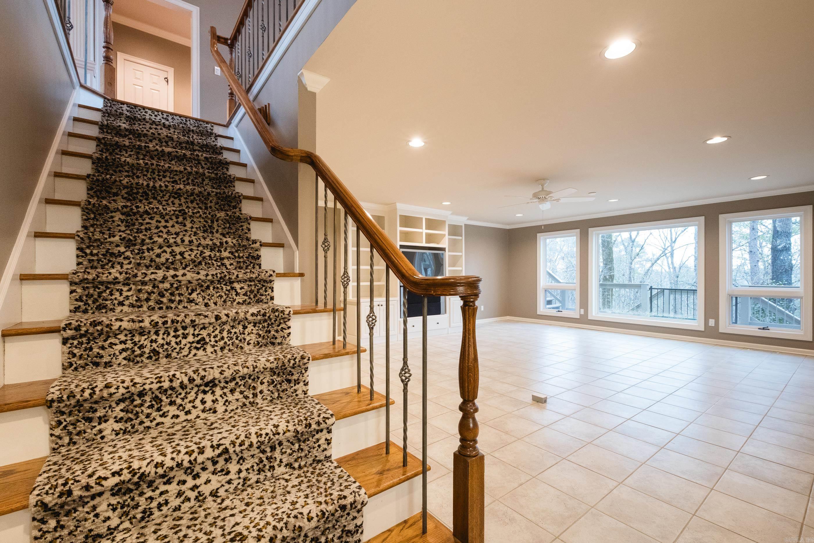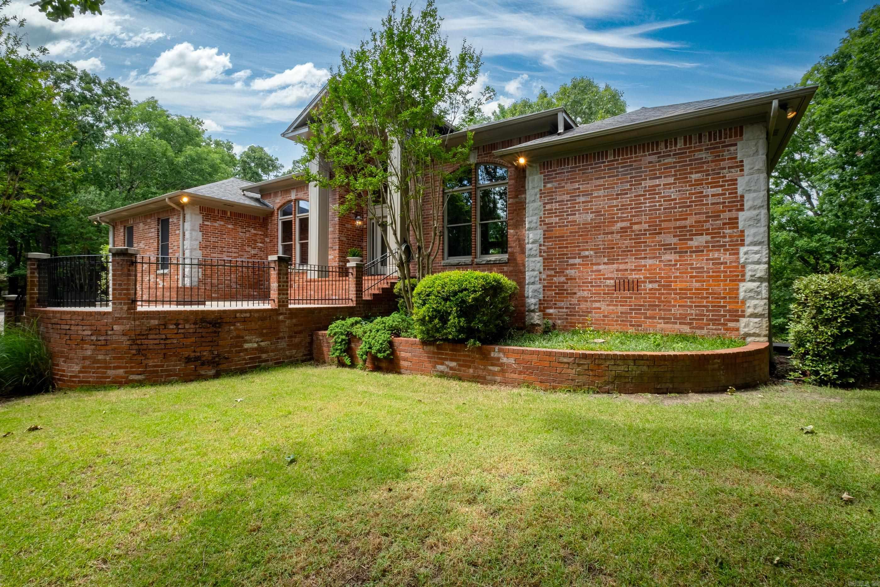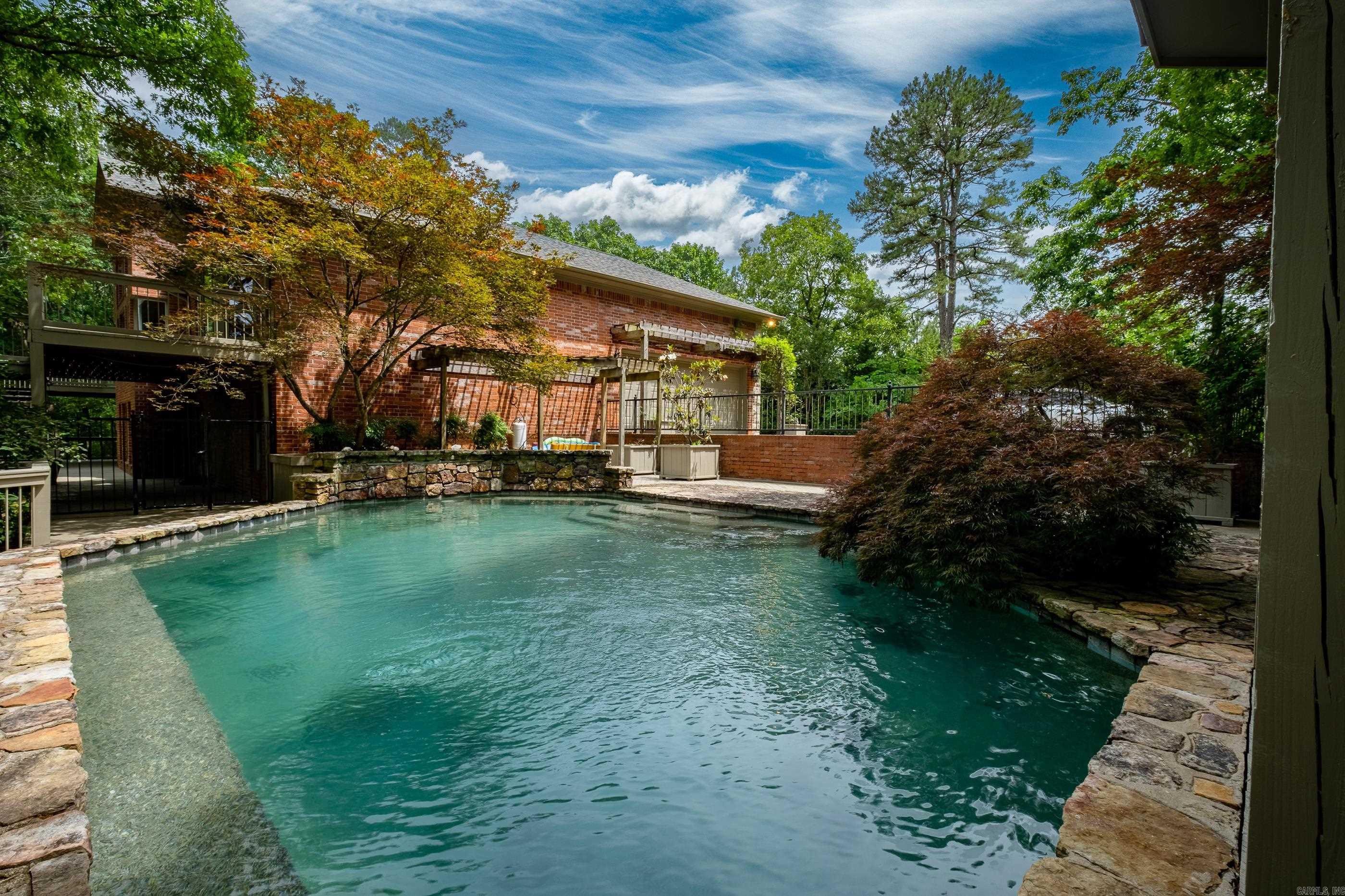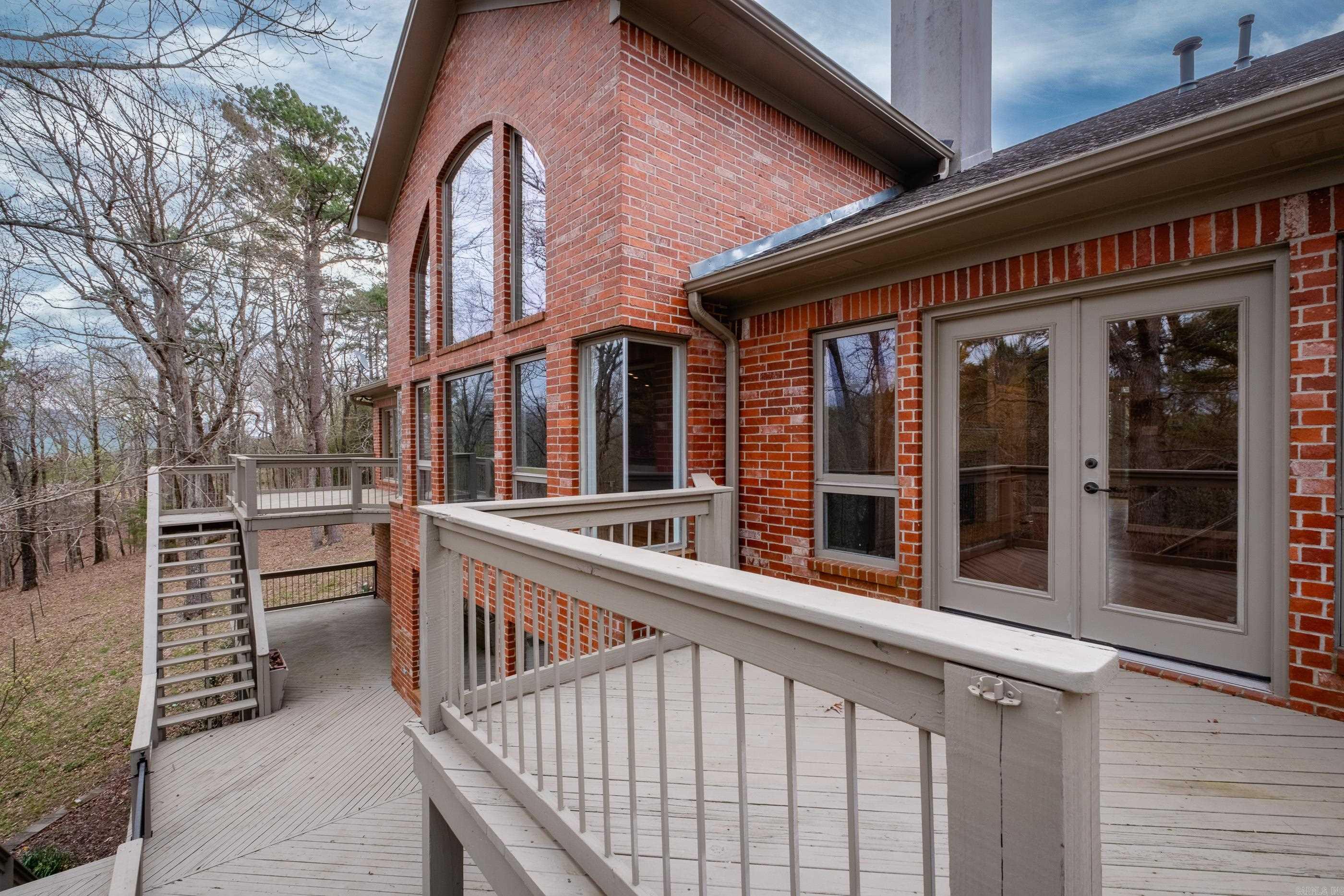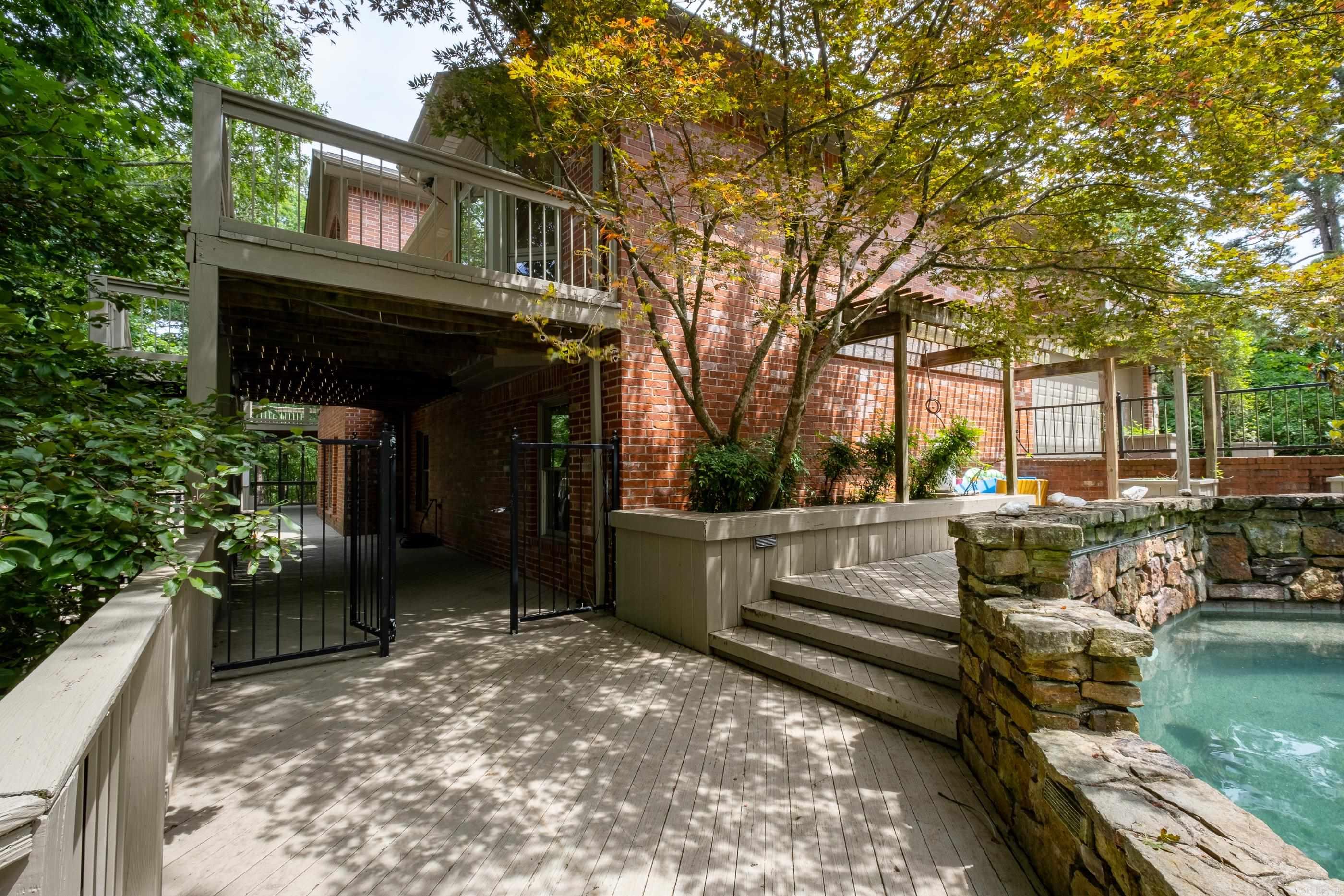 Perched atop a scenic mountainside, this stunning home offers breathtaking views in a private, gated neighborhood. A soaring vaulted ceiling and a wall of windows in the great room frame the gorgeous landscape, while doors along the back open to multi-level decks perfect for entertaining. The spacious layout includes both formal and informal dining areas, a large office/study with built-ins, and a double-sided fireplace connecting the great room and family room. The gorgeous kitchen features abundant custom cabinetry, counter space, SS appliances and a walk in pantry. The main level primary suite is a retreat with a private deck, luxurious spa bath, and huge closet. The lower level features a media/bonus/rec room with wet bar and kitchenette, two guest bedrooms with built ins sharing a large bath, a guest en-suite, and laundry room. An 800 SF basement includes a storm shelter for added security. Outside, enjoy a private oasis with a stunning gunite pool accented by natural stone, a patio with a gazebo, wet bar, and a beverage fridge. Recent updates include new interior/exterior paint and carpet while beautiful hardwood floors grace the main level. Ample storage thru-out. Come see!