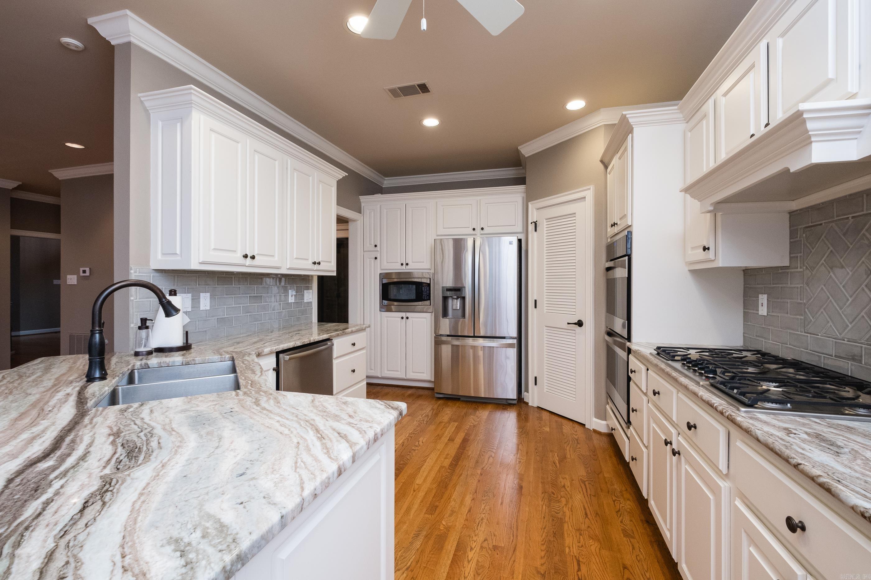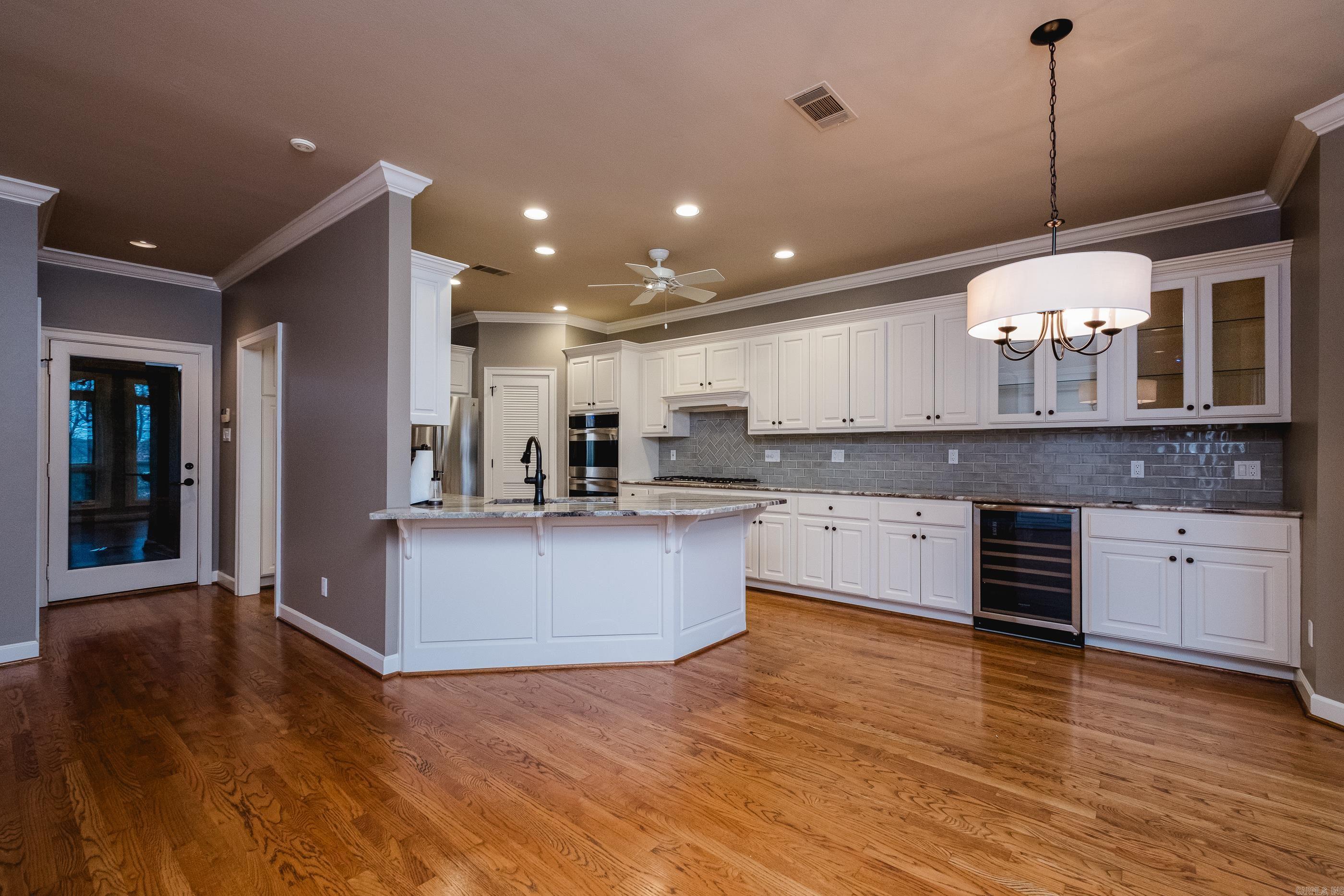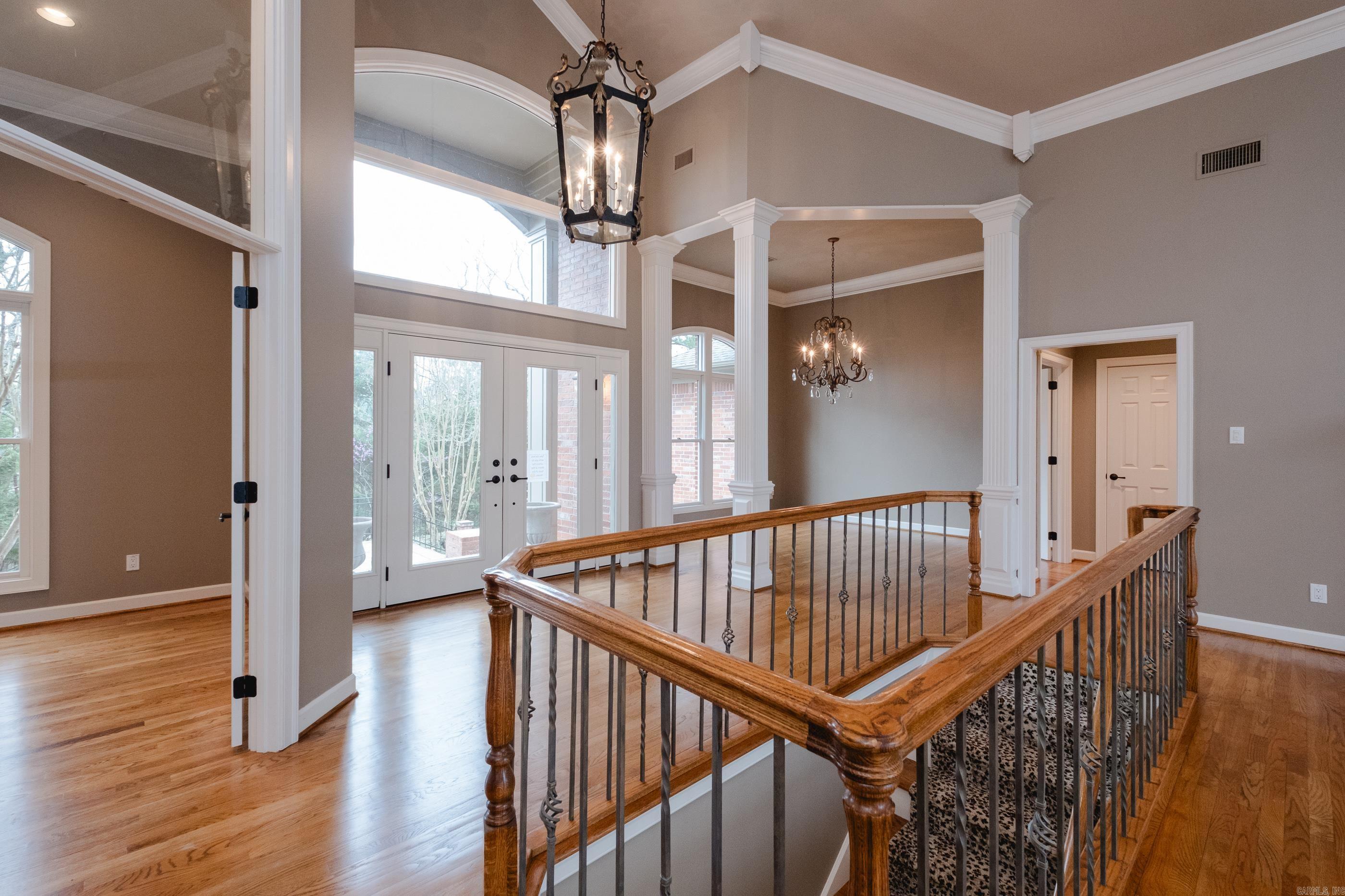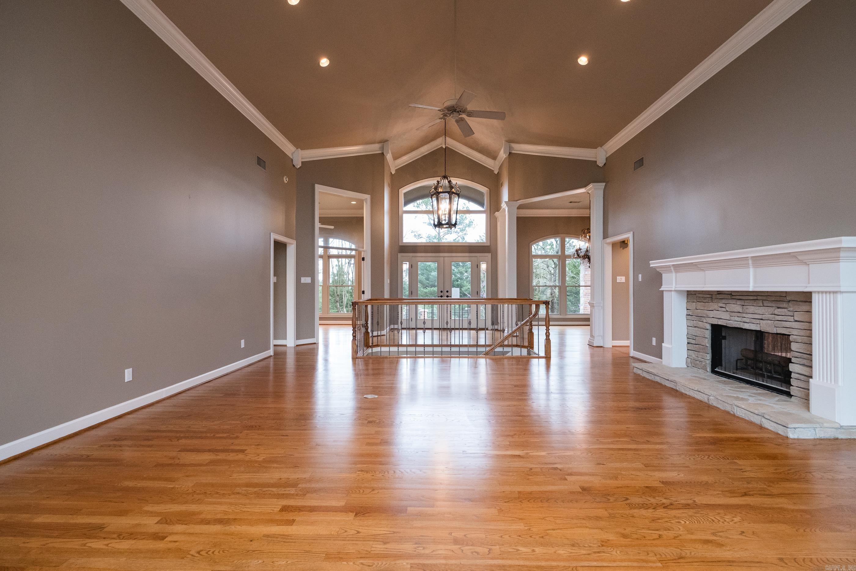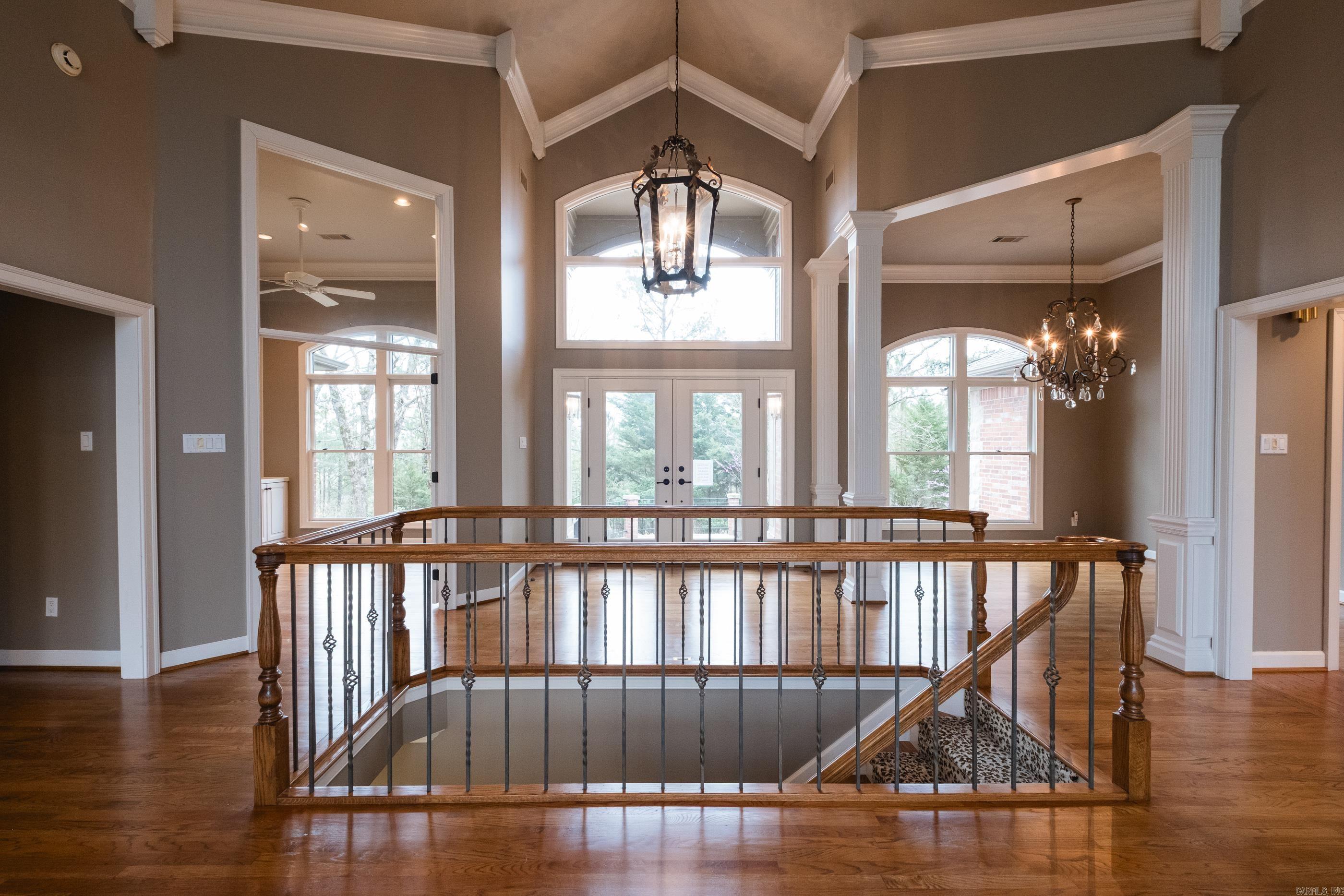 Perched atop a scenic mountainside, this stunning home offers breathtaking views in a private, gated neighborhood. A soaring vaulted ceiling and a wall of windows in the great room frame the gorgeous landscape, while doors along the back open to multi-level decks perfect for entertaining. The spacious layout includes both formal and informal dining areas, a large office/study with built-ins, and a double-sided fireplace connecting the great room and family room. The gorgeous kitchen features abundant custom cabinetry, counter space, SS appliances and a walk in pantry. The main level primary suite is a retreat with a private deck, luxurious spa bath, and huge closet. The lower level features a media/bonus/rec room with wet bar and kitchenette, two guest bedrooms with built ins sharing a large bath, a guest en-suite, and laundry room. An 800 SF basement includes a storm shelter for added security. Outside, enjoy a private oasis with a stunning gunite pool accented by natural stone, a patio with a gazebo, wet bar, and a beverage fridge. Recent updates include new interior/exterior paint and carpet while beautiful hardwood floors grace the main level. Ample storage thru-out. Come see!